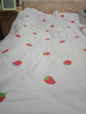 小被子质量好,料子柔软舒适,我拿来晚上给孩子当隔尿垫用的!很划算!买了两张,换着方便夏凉收到了,我之前一直都是从他(她)家买的,一直认相信他(她)们家的质量,质量是棒棒哒,中间有压线不会洗成一团一团的,边上做的也好,看不到棉,也不会跑棉,套不套被套都可以,我这人比较懒,脏了就直接丢到洗衣机里去洗,洗好脱脱水干的很快,风吹一下就又可以用了,超方便了,而且不会掉色,还便宜,超实惠。朋友看到了非常让我帮她也买一个,这次是帮朋友买的,朋友超喜欢,说摸着舒服,而且花型好看,颜色正,还让我再给她购一伴呢。物流也非常快,服务好,为店家点赞,棒棒棒棒棒棒哒✌✌✌