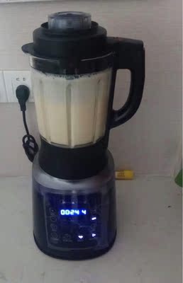 破壁机当天下午6点前下单,隔天就到了。宝贝到手就迫不及待试了下榨核桃豆浆(图一和图二),干黄豆洗过后直接和剥好的核桃放进容器里,打出来的豆浆真的好黏稠,口感也好,很香,比之前专门豆浆榨汁机口感要浓稠,而且不用过滤,营养都在这里面了;豆浆刚刚到出来,好烫,要小心。我最喜欢这个破壁机的清洗功能了,对于我这种懒人很实用,打完豆浆容器里面都是米糊的样子,装水到容器中,按住清洗功能就可以清洗干净了,想多清洗几次也可以,方便。破壁机工作的时候声音有点大,问过,说在正常声音范围内,听习惯了也还好,毕竟高速运转的东西,不发声也是不可能的,所以理解也就接受声音的问题啦。我也了解过其他家说是静音的破壁机,看评论也不是静音的,只是因为容器外还有一个隔音的装置,所以降低了声音,但是价格就贵很多很多啦。这款破壁机还有很多其他功能,做榨果汁、奶昔,芝麻糊,还可以做浓汤等等,后面我再一一试试。想入手破壁机,但是还在犹豫的亲可以选择苏泊尔家的,毕竟大牌质量有保障,性价比也很高。图四没有盖盖子,功能显示灯就不会亮,这个安全点做的很到位。图五送的是食谱,可以照着里面的做,有详细的材料比例和几个人的分量。