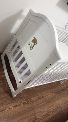友想买个安全健康的婴儿床给宝宝准备,等着卸货。这款床挺好的,收到了就组装了。挺简单。木头没有味道,床的高低带九档调节的,虽然我觉得这是个华而不实的性能。总得来说,婴儿床挺好的。打算放一段时间味道,给宝宝用。总之就是很满意,希望卖家再接再厉,