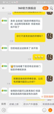 2、来自青岛市的小郭说:非常好用,也很专业,今天家里停电,难为安装师傅了,360的产品一直非常信赖,之前买的行车记录仪,我现在又买了指纹密码锁,做工非常好,性价比高,这种东西只要一个密码加指纹就可以了,其它花里胡哨的东西有几个人能用到,噱头罢了,总之这次购物体验非常好,五星好评。