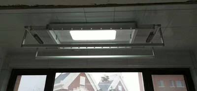 1、来自忻州市的小曹说:去年买了一副晾衣架,装在新房的阳台上,用起来得心应手,操作很方便,看到优惠又买这副晾衣架本想安装在另一个阳台上,但有人坚决反对,说影响采光,所以没装,到时需要再装。它的构造,材质跟卖家所述无异。好用,可照明,可加温可排风,可灭菌。方便,指升降顺畅,遥控自如。