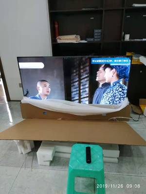 电视机够大,有气势,清晰度还不错。货物是婆婆接收的,物流送货的师傅服务很好,通电、检查、签字,很耐心地给老人指点。另外,感谢小钉螺和小荔枝,不仅服务热情,而且耐心细致解答顾客的每一个疑惑,有需要还会光顾贵店。手机摄像头坏了,就不上图了。电视性价比还是不错的,机身很薄,画质也清晰