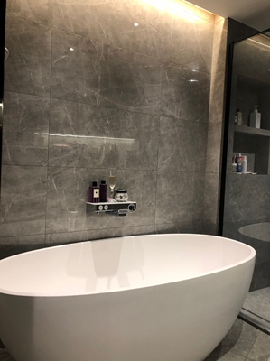 装上后放在这简直是高端大气上档次,浴缸质感很好,很漂亮,很喜欢这种北欧极简风格的设计,很简约百搭,泡着澡喝着红酒边听自己喜欢的音乐,一天的疲倦瞬间散去,之前我在现在实体店看过这种人造石材质的浴缸,当时问了一下价格都要上万元,所以当时没买,后面朋友听说我要买浴缸问我怎么不在网上买、我说网上买有点不靠谱毕竟这个是大件退换货麻烦,回家后在网上对了好多家店铺,最终选择了这家是因为这家店的售前回答问题比较专业比较耐心,所以就选了这家店下单,现在收到货安装好后之前的顾虑全没了,不选另外几家店的是因为回答问题有点慢、很多装修知识都不知道、收到货后我就联系了买家帮忙指导我这边的师傅安装上去,这个价钱买到这浴缸也是很值了,很好的一次购物体验。