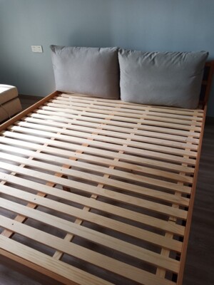 2、来自常德市的小杜说:终于收到货啦,这个床真的挺好的,款式简单大方,家里装修是主打原木色,床跟衣柜的颜色也挺搭的,床也挺结实的,床架也不算矮,就算加个厚床垫也合适,床感觉也没啥味,应该是实木的,这个床的价格也挺实惠的,还包安装,师傅送上门就直接帮安装了~~~
