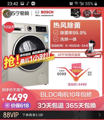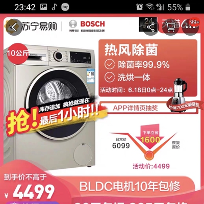 BOSCH/博世 10公斤 变频滚筒洗烘一体洗衣机XQG100-WNA254X90W 活动到手价格6099元!