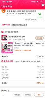 这次抢到了前5名真的很激动。家里装修,所以关注了双十一的活动很久,之前看到苏宁也有活动人数多抢到的概率大,但是没有这里优惠,所以最后还是抢他家的活动,想想就算抢不到还有赠品也是很值了。早早加了购物车,双十一准点抢,应该是十几秒就完成支付了(感恩网速给力)。然后第二天就有人安排配送了,效率很高,东西也好。还没有安装调试但外观什么的没问题就应该不会有问题的。