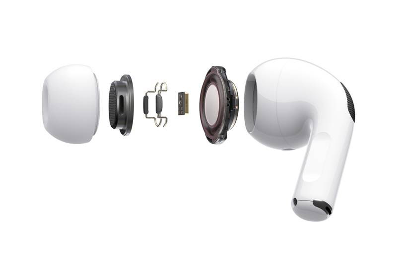 从新AirPods Pro的造型来看,从原来独特的半入耳式改为加了耳套的入耳式,可以看到其降噪的特性。因为耳套带有一定的被动降噪功能,所谓被动降噪便是通过物理隔绝的方式,将噪音隔绝,防止声波进入耳道内。