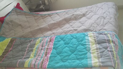 不错不错,这个价买到划算啦,是纯棉的,盖着舒服呢,和男朋友一起睡在床上刚刚好,和我房间的风格基调一致,不错不错,感觉萌萌哒,粉粉的温馨舒适,而且价格还不贵,春秋盖着刚刚好,夏天开空调盖也舒服,萌萌哒的被子,喜欢呢不错不错,有北欧风的感觉嘻嘻