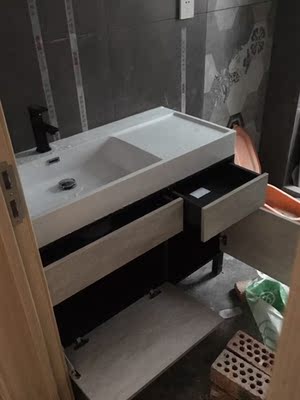 浴室柜的质量没的说,找的安装师傅忙了一下午才安装完成,整体效果很好。收货时发现浴室柜右侧边条磕坏,物流运输太暴力,这么结实的包装也有本事磕碰坏了,和店里沟通,及时补发一个边条用顺丰发来,安装后完好。这个柜体是实木的很结实漂亮,总体很满意。