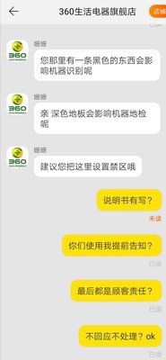 第一次用高科技,还是不太明白,跟售后沟通了一下,很耐心得给解答所有问题,以为是水箱坏了,都要给贴心得换水箱了,才发现是我自己安装出错了,对机器人满意的对售后更满意,挺好的,以后有啥高科技得东西还来买,解放了双手,十分不错。价格也便宜,实在是懒人福音。