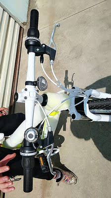 车子大气漂亮,黑蓝红颜色很有质感,之前还担心颜色不好看,真是出乎意料,手感也特舒适。特别喜欢后轮组空转的声音,安装简便,半个小时就安好了,其余部位不用安装的地方也很紧固,根本不用自己动手。经过悉心指导,把前轮调整了一下,完全没有蹭盘的现象。最后建议建议买个脚蹬子,说进口车就是裸车不含配件,但是买的时候忘记了,靠墙靠树的话,我还没习惯。。