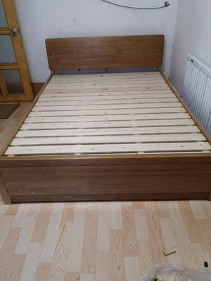 是实木的,也没有什么味道。一千多的价格确实是买不到多高档的床,但是这个做工也太不好了吧,刷漆颜色深浅不一也就算了,到处都是钉枪刮坏的痕迹(这里只能放5张图,其实更多瑕疵),一开始使劲的推卸责任,后来说发漆膏给我自己补。。整体来说不值这个价格,只能中评。