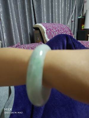 阑阁B9翡翠手镯怎么样,到底是不是真货?来吧!秀美镯~条子颜色很美,很清新,比较厚装的原因吧水头没有我的糯冰平安镯水头好,但是园条可爱啊,夏天配个裙子什么的妥妥的瑕疵有点多,一个大晶体要哭了,还有点棉结,小点晶体,有点受不了,但是不细看还是没啥,只是有强迫症的人啊总体来说美美的,不能嫌弃啊,都是自家宝贝们啊