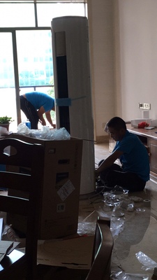 到货后马上安排师傅第二天来安装。安装师傅电话预约很有礼貌,进门后自觉换上自备的鞋套,也会明确告知高空作业费等费用的多少。那么大太阳,顶着烈日冒着大汗把空调装好了。装好后还把所有都清理干净。让他们喝杯水,他们也没喝,不懂是不是有规定?安装师傅确实辛苦了,必须五星好评哈!