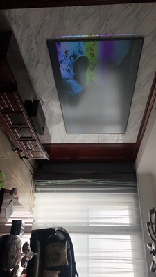 2、来自江门市的小徐说:包装非常用心,有两层泡沫保护宝贝。使用也很简单,插上电源,用遥控板打开,就可以自动对焦,自动进行梯形矫正。图像的清晰度还不错。另外值得肯定的就是音响效果,有点家庭影院的感觉。要说不足的话,梯形矫正还有一点缺陷就是在能够看到矫正过后留下的浅色影子。