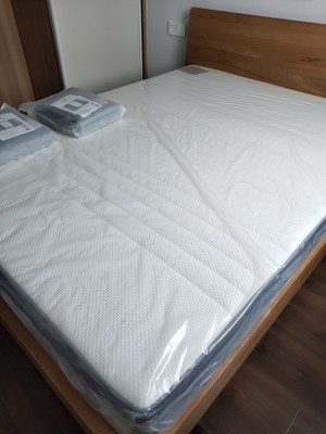 前几天因为一直下雨比较迟才让货运站送,床垫包装非常好,外层是防雨的油纸,里面还有塑料薄膜,打开也没有什么异味,稍微晾晒一会就给儿子房间换上了。高度刚刚好,软硬度适中,儿子睡了两天说还不错。南方的雨水多容易潮,防螨型的上层可拆洗,看起来还不错。
