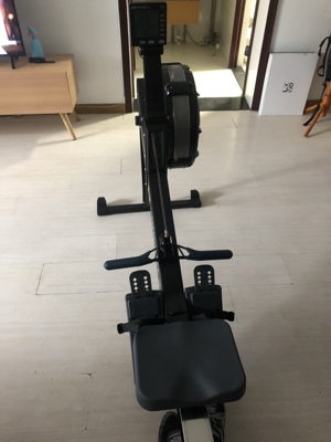 不得不说一分价钱一分货,满分,有问必答,超级耐心,物流发的是顺丰,中间出了点小问题,把件给我分错站点了,又退到集散点重发,晚了一天收到,期间也是热心沟通,圆满解决。下面说划船机本身,质量杠杠的,结实耐用,PM5可以设置成中文显示,机器安装简单,拧8颗螺丝即可,风阻部分和座椅部分可以拆成两截存放,适合像我这种小户型使用,风阻部分带滚轮,可以轻松移动。使用了四天,按照说明书的介绍以及公众号的教程使用,5档,SPM控制在24至30,10分钟开始出汗,体感和跑步机5公里时速,4.5%坡度慢走20分钟相同,5档30分钟已经是大汗淋漓了,由于膝盖有伤且有拇外翻,所以长时间的跑步机会让我觉得膝盖疼,但是划船机不会,使用30分钟膝盖及拇外翻处无任何痛感,会坚持使用,很适合我。