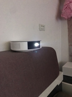 终于还是出手买了,果然没有失望,可以自动调焦,梯形自动纠正,色彩也不错,视频是白天拍的,照片是开了非常亮的顶灯拍的,效果还是不错的,后来关了灯,发现效果更好。音响效果很好。个人觉得国产品牌做的还是非常不错的,很人性化,适合家庭娱乐使用。