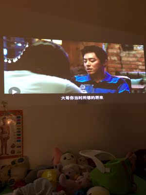 媳妇灰常激动,操作简单,分分钟设置好,立马各种体验,每个栏目都去点了一下,当然最重要的是去体验了4k,似乎是要清晰一点,暂时没发现3D的入口,当然光线暗一点效果会更好,各种爽。最后个人觉得并不太需要幕布,即使凹凸不平的墙面也能投出不错的效果,爱了