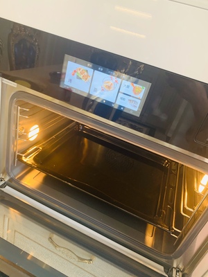 蒸烤箱收到了,外包装用木架,保护的很好。镜面前门和操作面板,非常好看和上档次。内装的配件码放整齐,封装的很好,不会在里边滚动。开机试了消毒、上下烤、风热等功能,声音不大,前出风口的热气温度也不高。虽没做食物,已经很满意,具体使用后再追评。