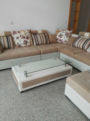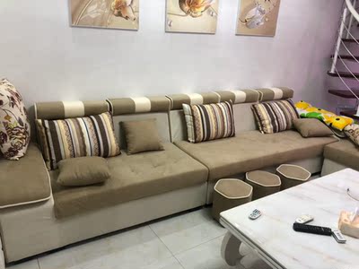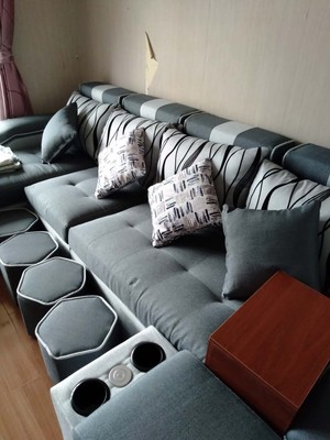 沙发很满意,做工也很精细,这个烟灰色真不太好看了吧?高大上有没有?茶几,电视柜也是在她们家一起购买,实物很好看,质量做工也一样好。这次购物很满意,推荐购买,商家还很贴心的送了三个抱枕,和沙发很搭!和安装师傅服务太度都很好。买它!买它!买它!