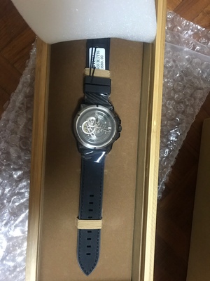 2、来自运城市的小唐说:618那天才买的,不是活动一出来就买了,看评论都没有盒子,可能是我买的比较晚,还是有给我发盒子的。。半价真的很便宜了,加上津贴红包各种就花了四百多买下,本来想买白表盘,没货了,不过黑表盘黑表带看起来很酷,很喜欢,就是表带有点长,无处安放,随便买了一个钢带换上,也很喜欢