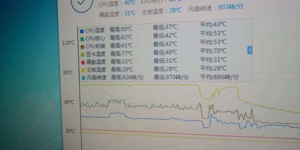 散热性能:散热效果不错,温度一直在正常范围,玩游戏升温也不严重,风扇声音很小,静音效果好