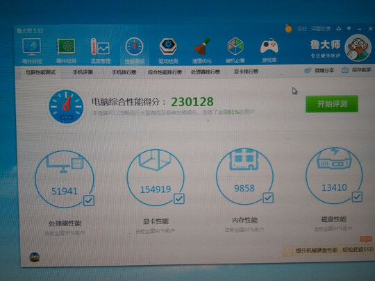 评分检测:鲁大师跑了16w分左右,能满足主流游戏和PS等软件需求