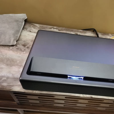 峰米激光电视WEMAX怎么样,优缺点秘密解说,幸好看了!目前放在家里的小卧室侧投,大概有70寸左右,空间有限,以后会试试放到客厅,放大到100寸。即便不买幕布,投到墙上也是没问题的。白天或晚上开灯也可以看,但是效果还是关灯更好,音箱的音效也挺好。缺点我认为就是没有梯形自动矫正,音量调到最小,声音还是有点大。
