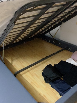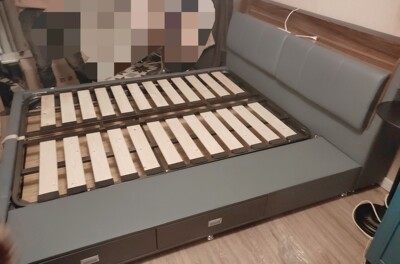 刚刚组装好,安装师傅人非常好也比较认真这样大大床一个人搬上二楼。我提出帮忙他一人说可以搬好后安装特仔细床也还可以毕竟就是这个价位吗?。上面的小被单是老妈铺的说占时不睡在上面透气怕有灰尘所以遮盖一下也蛮好的,谢谢商家下次希望快一点就更好。整体不错谢谢