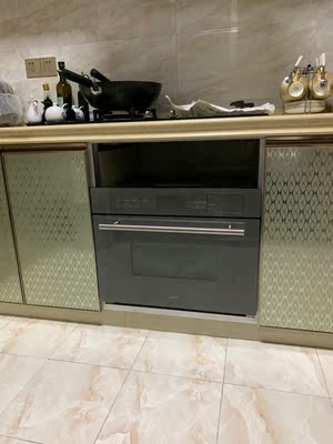 不懂为啥尺寸图给的是这样的,最小550,你柜子至少要做600才够,否则后面插销都没地放,蒸烤箱的插座一定要装在柜子的旁边,方便开关,而且插头一定要是16A的,否则用不了,这些很实用的东西通通没有提醒,问的时候也说最小550,但是我做了550,根本放不进去,外腔高720,但实际内腔只有595,放进去头向下沉,垫了块板子才行,装修小白真心累,以后还是在实体店买了,会少很多安装上的麻烦。