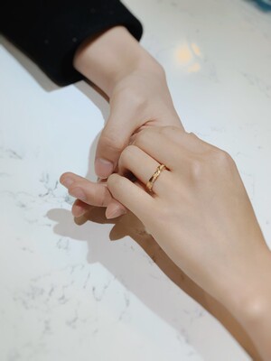 其实已经在其他珠宝店里交了定金,然后一直都比较喜欢这个款式,放大胆子买了,买的12号,无名指大了一点,中指可以带,就一直在矛盾改不改戒圈,最终也没有改,所以就等它自动确认收货,码是可以扫出来,然后钻石滴水我也测试过,但是最终还没有拿去实体店鉴别,以后有时间应该会拿去鉴别一下,毕竟意义是不一样,希望不会失望的,戒指很好看,很喜欢。