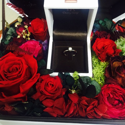 2、来自松原市的小陈说:买了钻戒,又买了对戒,都很喜欢,钻戒13号指圈和我这对戒14号指圈大小几乎一样,给大家提供参考,之前在直播间抽送的永生花,快递太暴力,到了发现碎了,暖心补发,和戒指一起送过来的,还送了很多礼物,老公的戒指内镶嵌一克小钻,用十七的话说是爱在心中的意思,很喜欢这款男戒,低调内涵