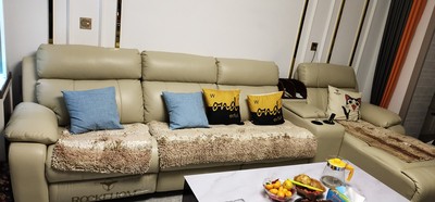 3、来自葫芦岛市的小何说:沙发是真皮的,因为要万多元,所以选择比较谨慎,先是让卖家寄了皮样确认颜色在生产,到了也请了专业的朋友过来,是真皮的,诚信商家坐着挺舒服的软硬合适,深度够宽可以躺下来了,一直担心搬不进去,还好分体式的款式如愿以偿。不错,和家具整体风格很搭