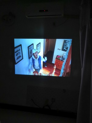 一直想买个投影仪,躺床上看电影,刚一收到就迫不及待的连网试试,大白天的效果,估计晚上效果会更好吧