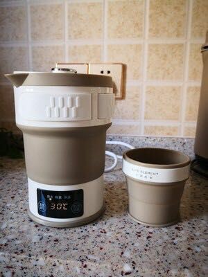 水壶很小巧,手柄可收设计很贴心完全不占地方。略有胶味,试着烧了一点水很快就开了没什么声音,看开关还有几个不同的功能,开关设计有点缺陷,是开事关不明确,送的转接插头看上去功能很多的样子,可惜到货就取消了出行计划,留着下次用吧