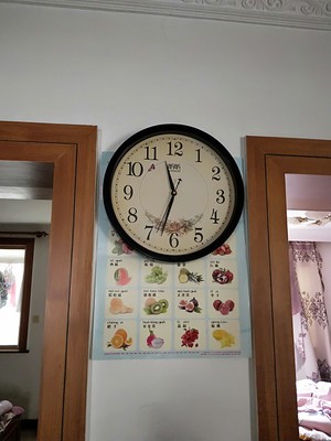 很喜欢,钟面简洁清爽,包装的也很仔细,超静音的,晚上也听不到走钟的滴答声,我使用了两三天了,质量很好,没有一点的问题,产品的颜色也是十分的好看啊,钩钉墙上一点都不损坏墙壁,钟表挂上很合适。挂上墙朴素典雅,走时准确,很安静的。款式很好看,上面的时针分针秒针和数字都很清晰,简单大方,便宜实惠。秒针走起来也不会吵闹。漂亮也很清晰,特别好看